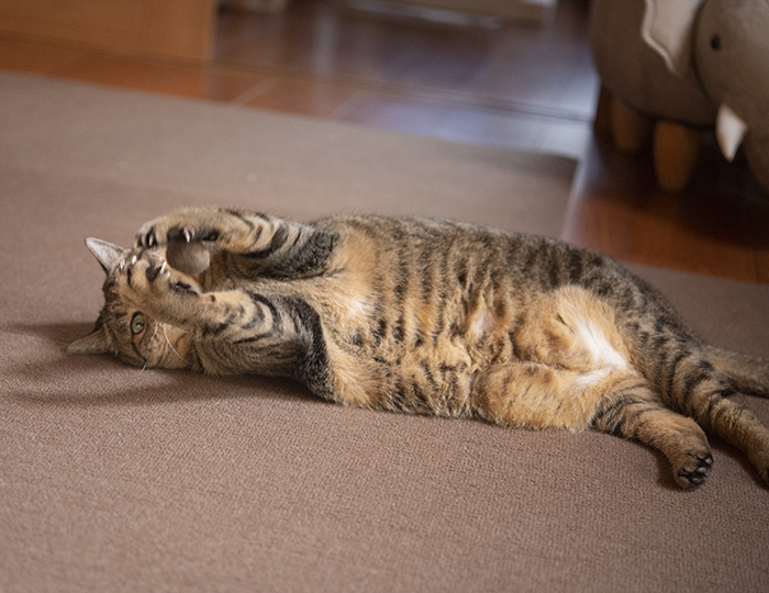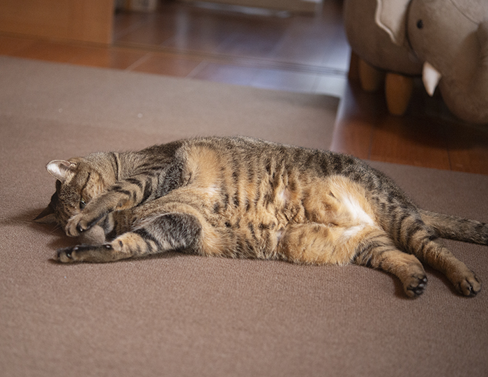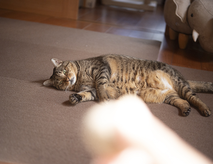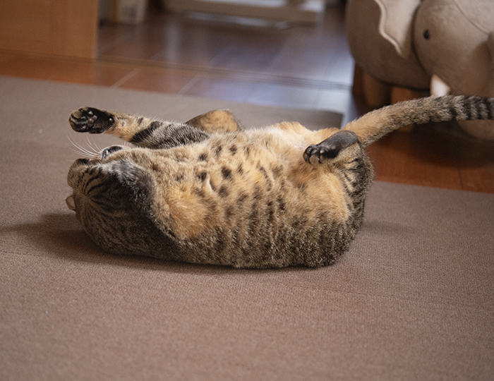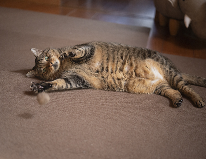 まる毛ボールにテンションが上がったはな。Maru’s fur ball excited Hana.