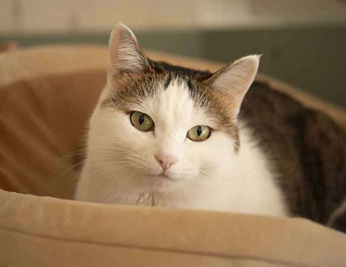 はなとみりは好みの場所がよく似ていて、同じ猫ベッドを、今日ははなが使ってる、