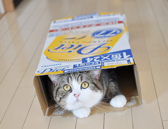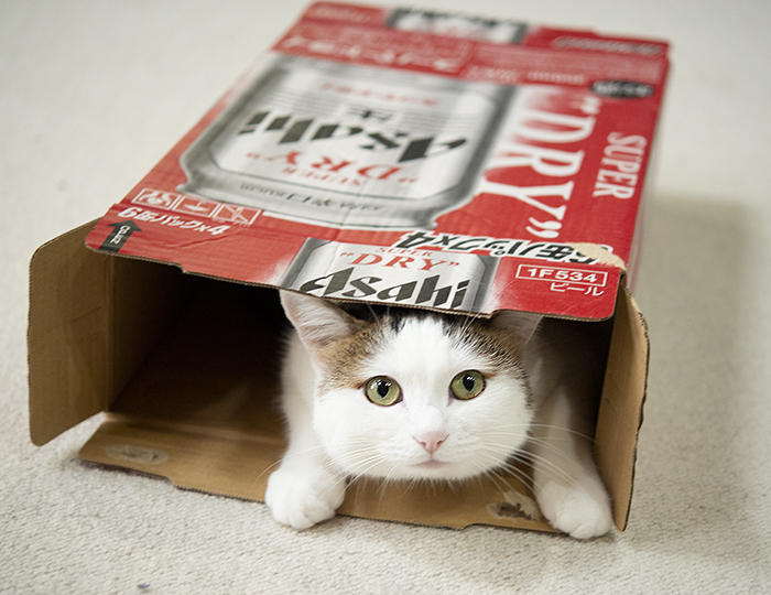 はなも入ってみる? とはなの前に大きなビール箱を置いたら――