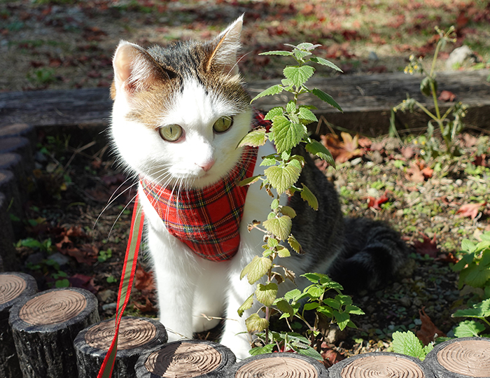 Lately Hana’s been enjoying walking along the edge of the cat flower bed.