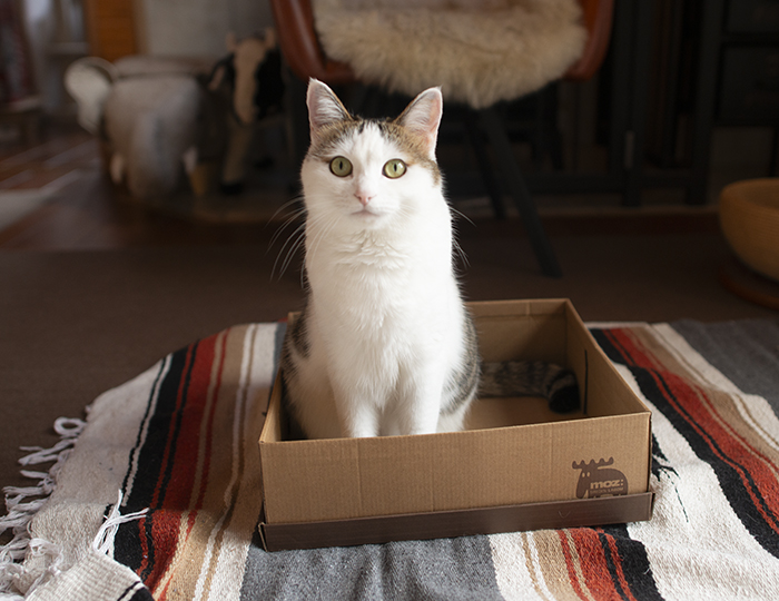 Until now, when I put things like cardboard boxes, Miri sometimes peed in them.