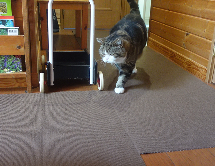 まるさんがよく歩く場所にシート状のカーペットを敷くことにしました。