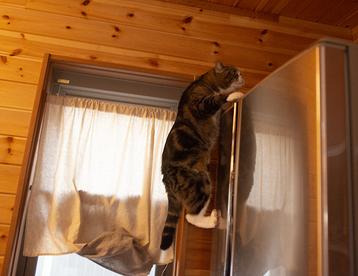 まるさんは、いつも最初に前足をついて、懸垂状態で登っていた。