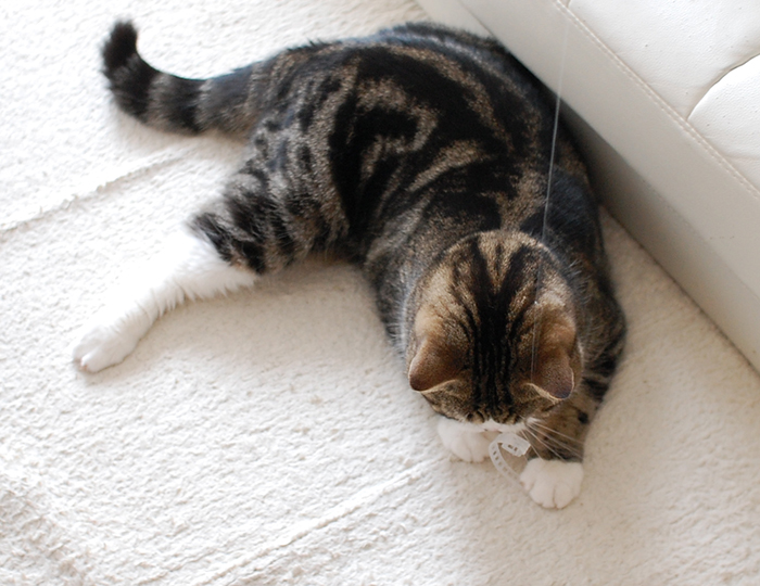 この時まるさんが遊んでいたのは、電化製品のコードを束ねてあったやつです。