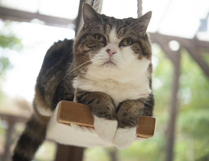 まる:「このブランコでのんびりゆらゆらするのは、家の中限定ですよ。」