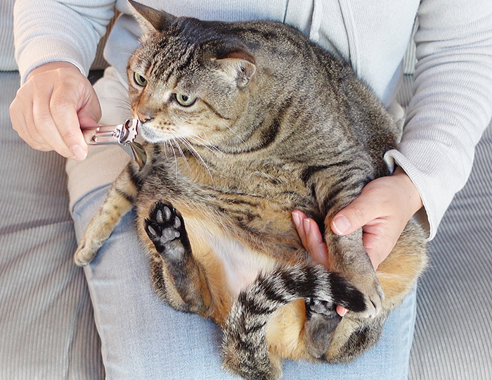 So when I clipped her nails in her usual position, she was completely unopposed.