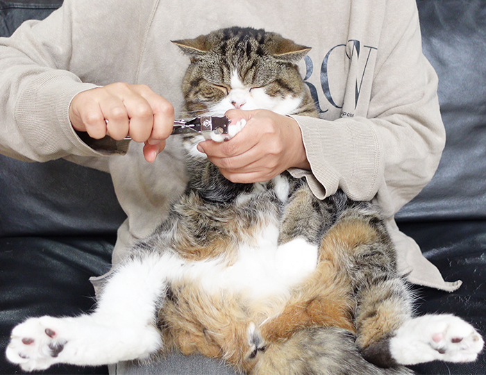 なのでいつもの、この体勢で爪切りしたら、まったくの無抵抗。