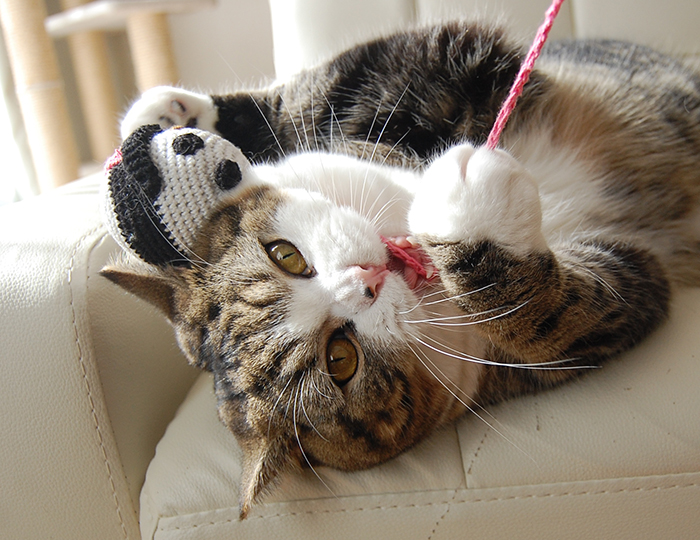 This is the panda toy that he used to play with when he was a kitten.