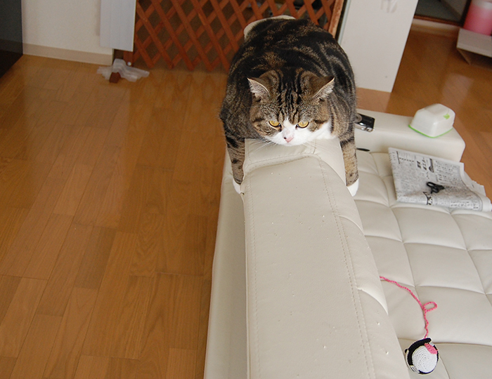 Maru’s tired from playing with the pandas and is taking a break.