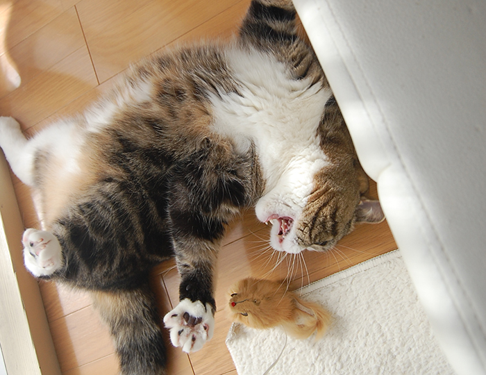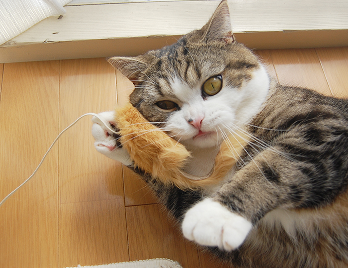 それ以前から、まるさんは、このゴムのついたネズミのおもちゃが大のお気に入りで
