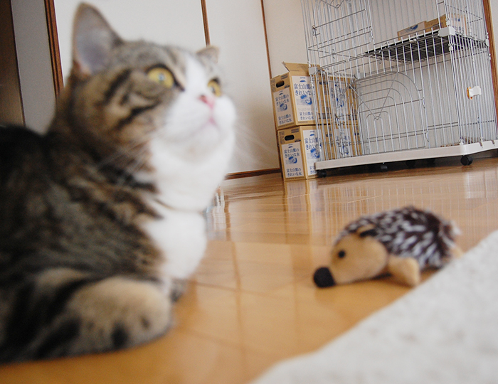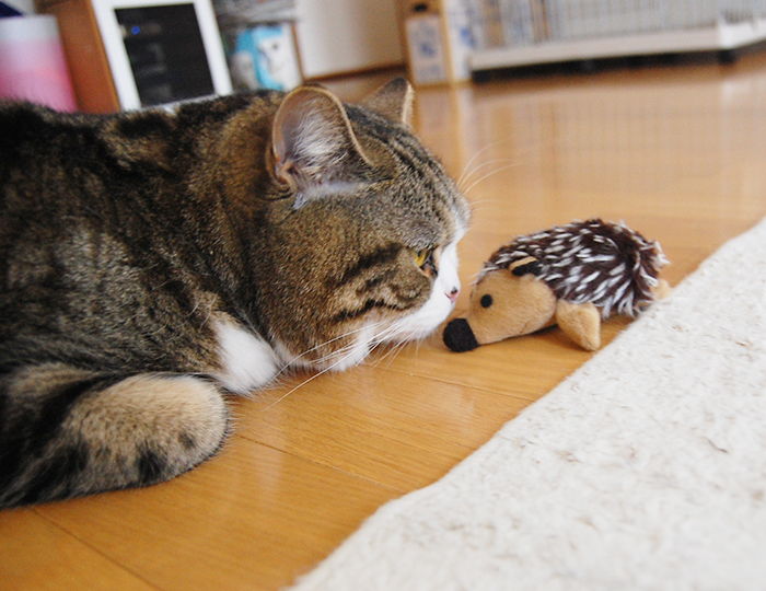 Maru played with the mouse every day with great excitement, so I gave him Harry, a hedgehog about the same size as the mouse.