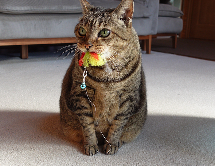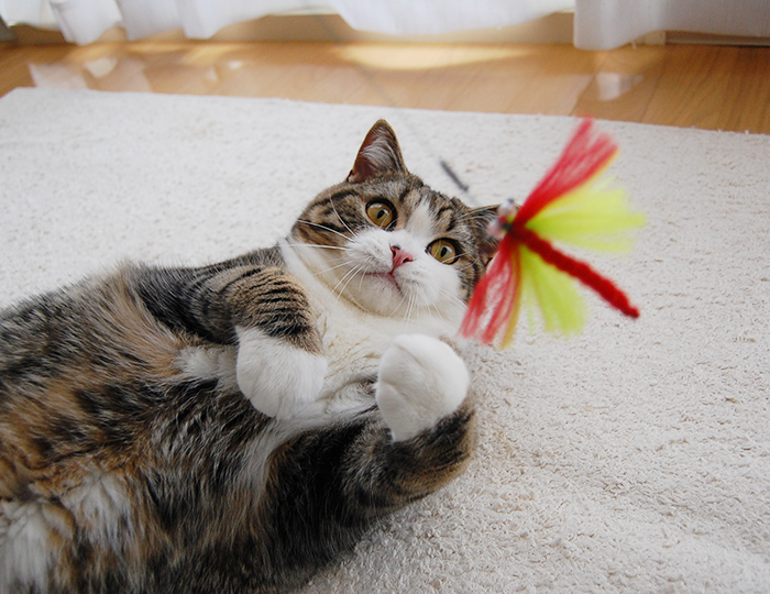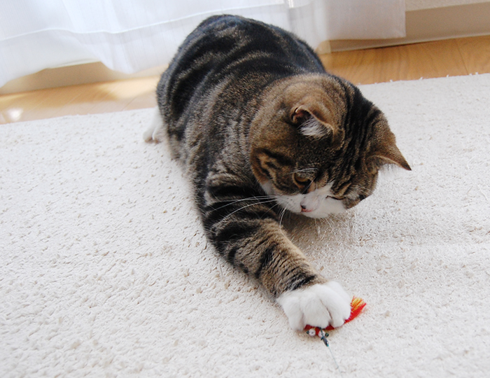 Maru ran around a lot chasing the toy on the end of the pole.