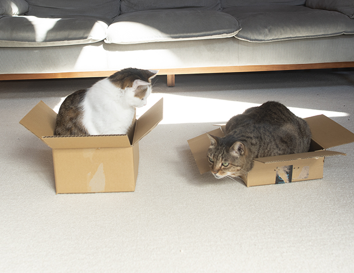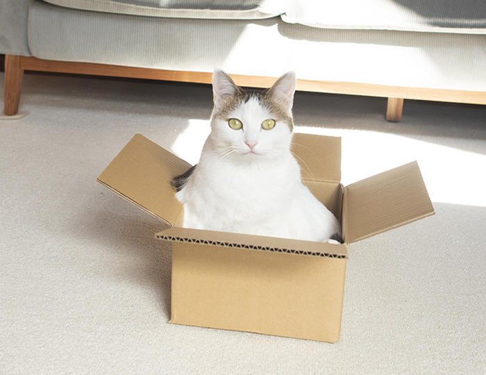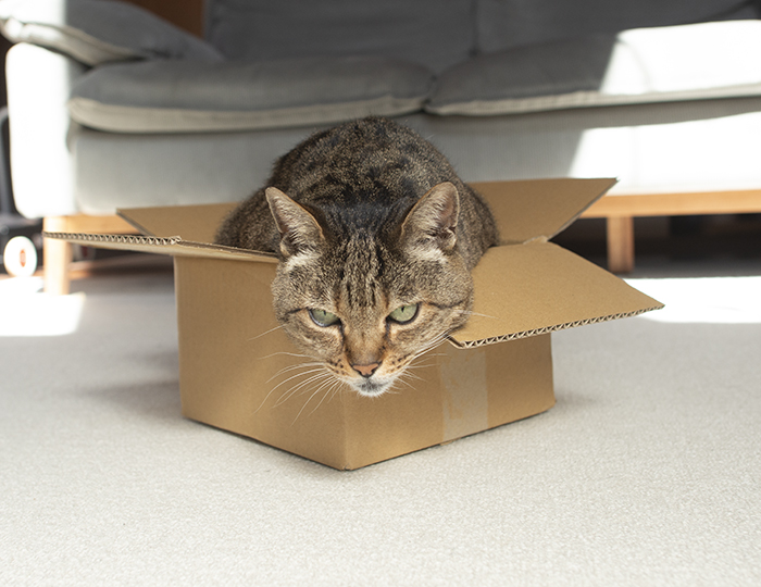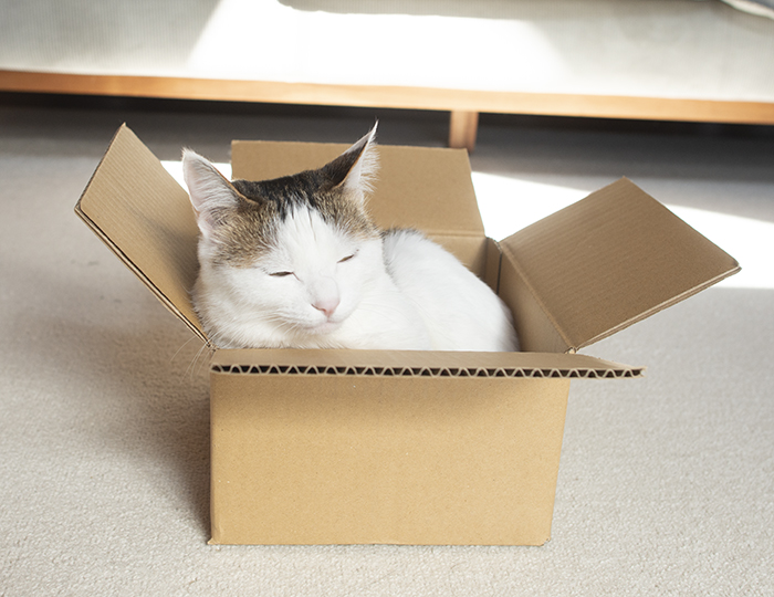Miri is in a cardboard box for the first time in a long time.