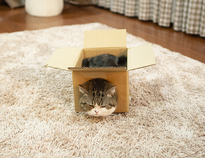 久しぶりに段ボール箱に入っているみり。