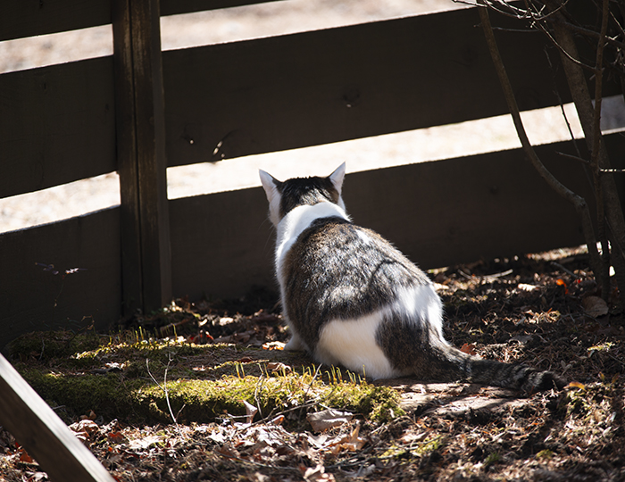 Miri meows at the birds, but she doesn’t speak to the squirrels, just watches them motionless.