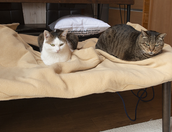 The top of the kotatsu futon is very popular with cats.