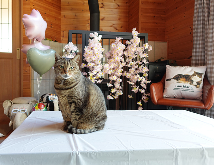 お誕生日会、イケメン風まるさんには特等席で参加していただきました。