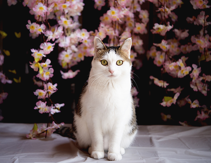 以前はこの造花の桜もかなり怖がっていたけど、今回は平気だった。